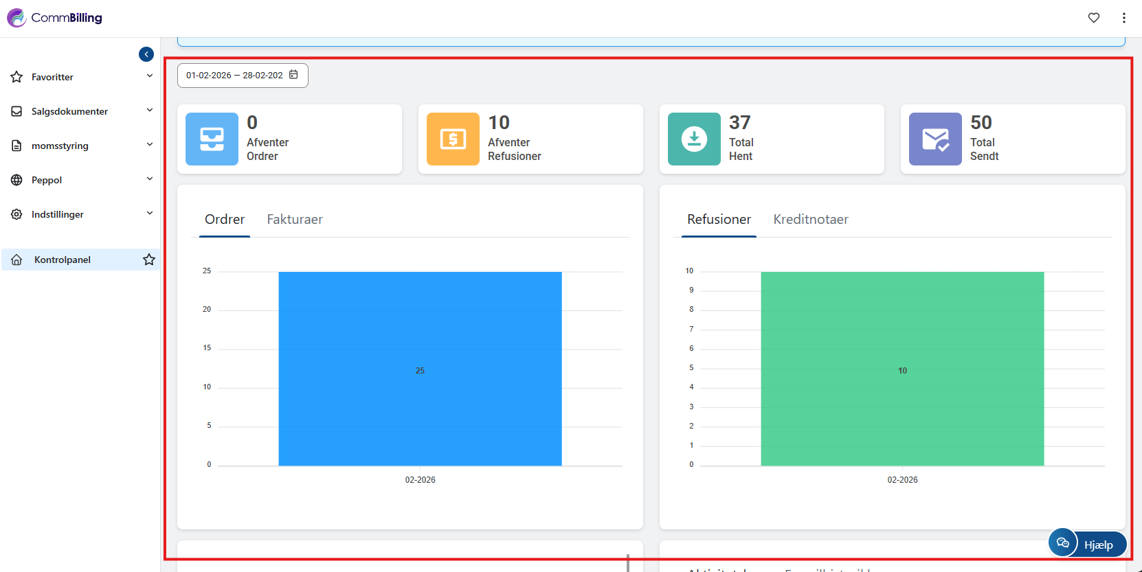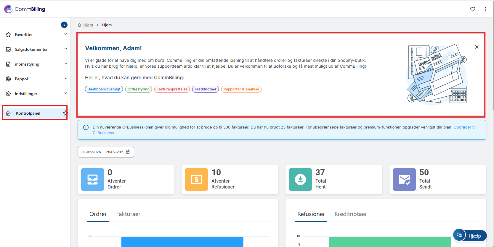 Ved at udnytte fanen Dashboard fuldt ud har du alt, hvad du har brug for til at administrere din butiks fakturering effektivt og med tillid. Dette centrale knudepunkt giver klar indsigt i din fakturering, ordrestyring og dokumentbehandling, hvilket sikrer problemfri drift og kundetilfredshed.