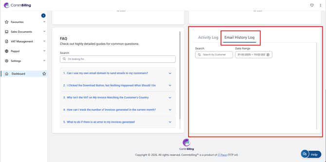 The Email History Log allows you to monitor all outgoing emails related to billing, including invoices, credit notes, and payment reminders. You can track the status of each email (e.g., sent, delivered, failed) and ensure that your customers receive their billing documents on time. This section gives you peace of mind by providing a complete communication record between you and your clients.