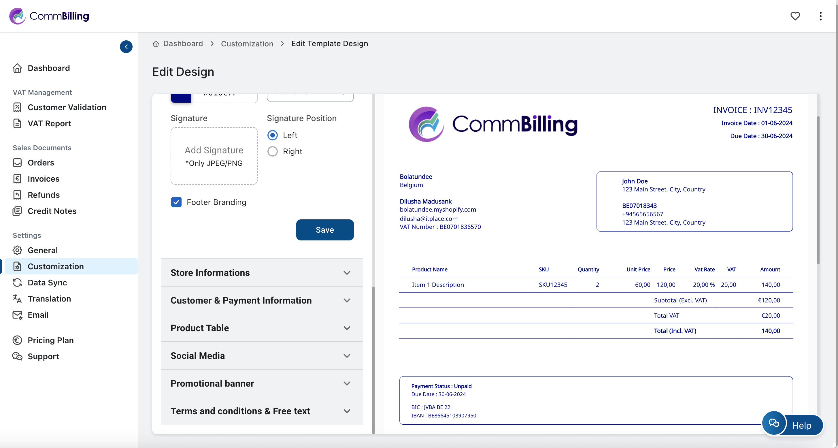 You can manage and edit your invoice design directly from the customization settings. Follow the steps below to adjust your invoice layout according to your preferences.
