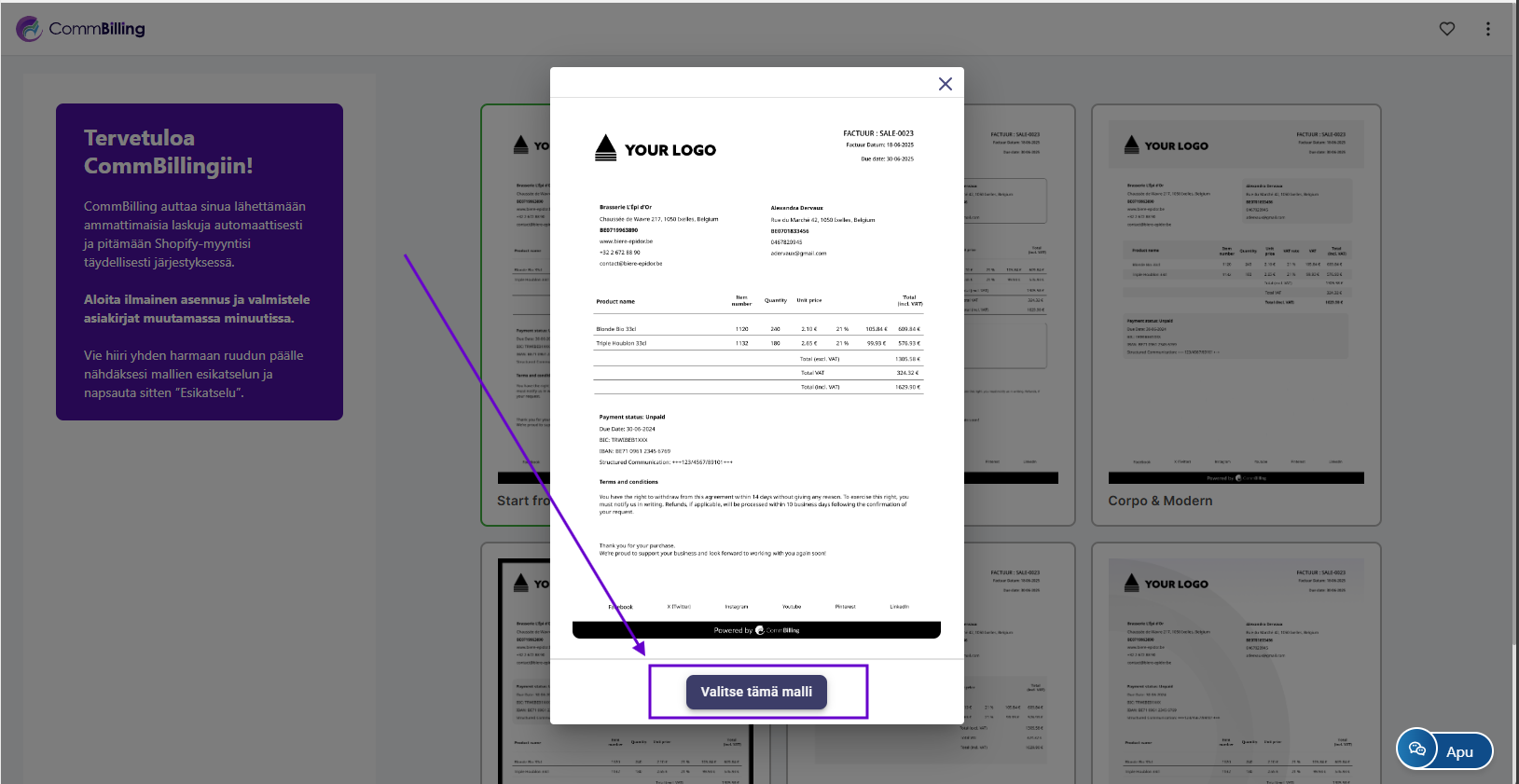 - Napsauta Valitse tämä malli