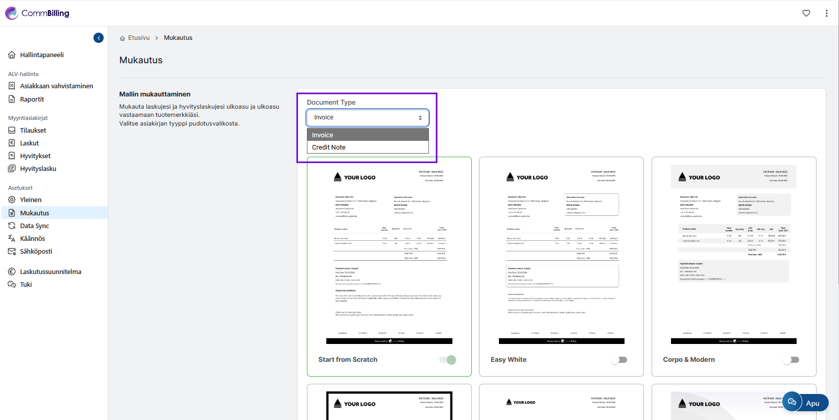 Laskujen fonttien mukauttaminen parantaa brändisi visuaalista yhtenäisyyttä ja vahvistaa talousasiakirjojesi ammattimaista ilmettä. CommBillingin avulla voit helposti säätää typografiaa yrityksesi tyyliin sopivaksi ja varmistaa, että jokainen lähettämäsi lasku tekee vahvan ja johdonmukaisen vaikutelman.