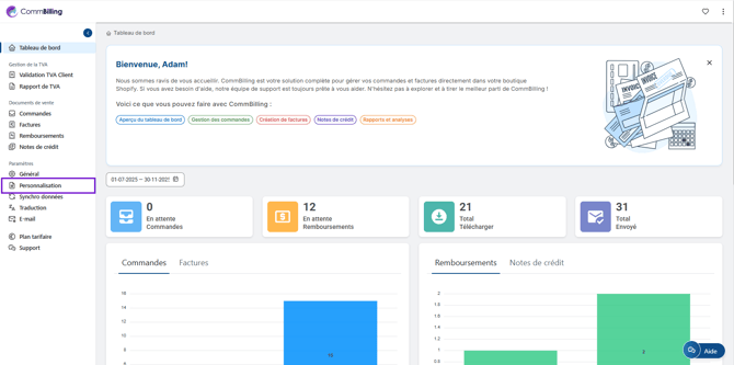 Avec les modèles professionnels prédéfinis de CommBilling, vous partez déjà d’un design prêt à l’usage. La flexibilité supplémentaire permettant de personnaliser les couleurs du fond, de la bannière et des titres vous aide à faire en sorte que vos factures reflètent entièrement l’identité visuelle de votre marque, tout en conservant clarté et élégance.