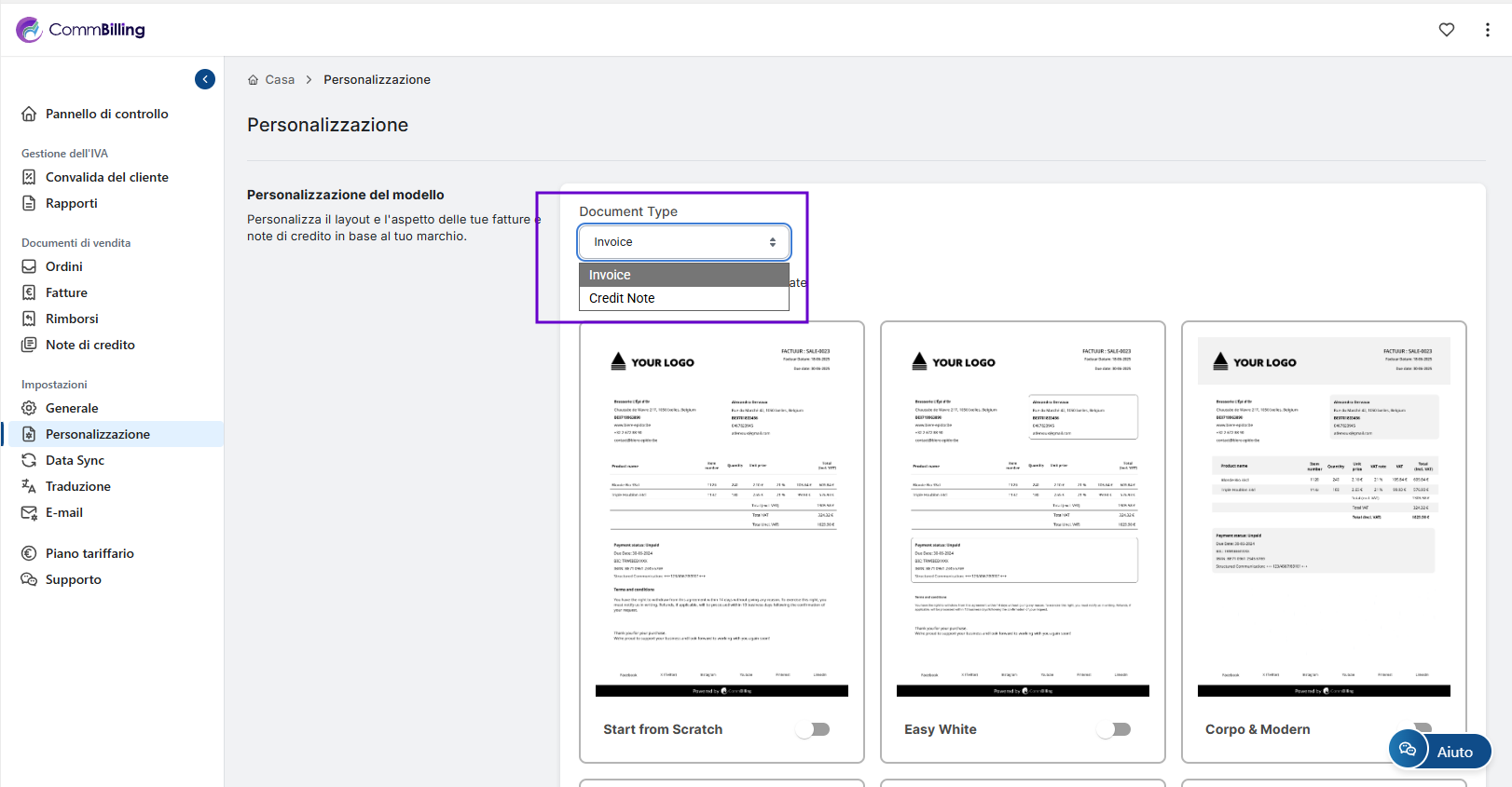 Come personalizzare i documenti di vendita in CommBilling