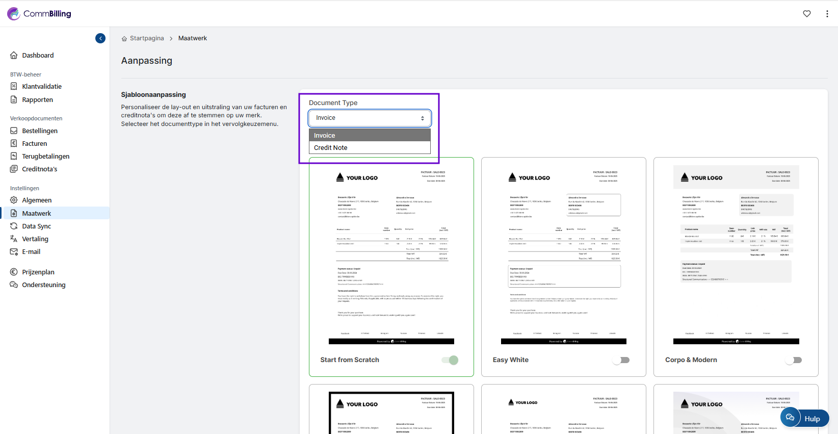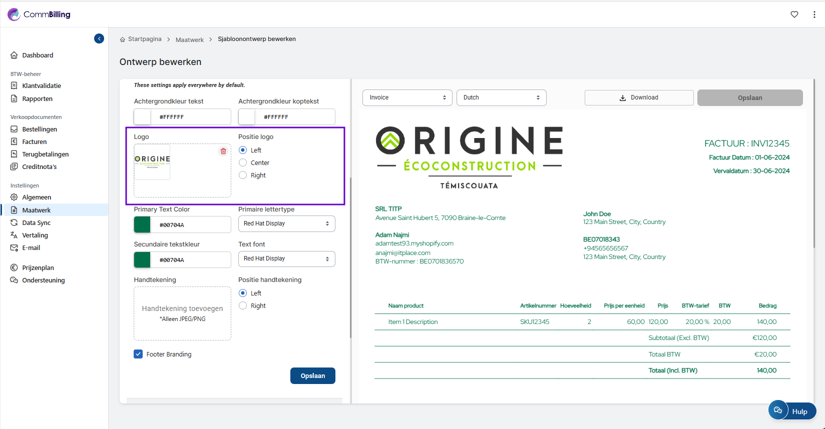 Door je logo toe te voegen, zorg je ervoor dat elke factuur die vanuit CommBilling wordt verzonden direct herkenbaar is en consistent blijft met de visuele identiteit van je bedrijf. Deze kleine maar waardevolle aanpassing versterkt de geloofwaardigheid van je merk en verbetert de communicatie-ervaring met je klanten.