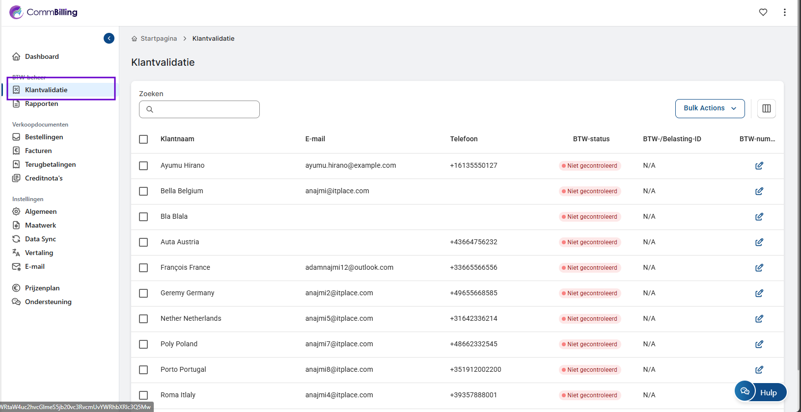 Deze bulkacties maken het mogelijk om btw informatie van meerdere klanten tegelijk efficiënt te beheren wat tijd en moeite bespaart.