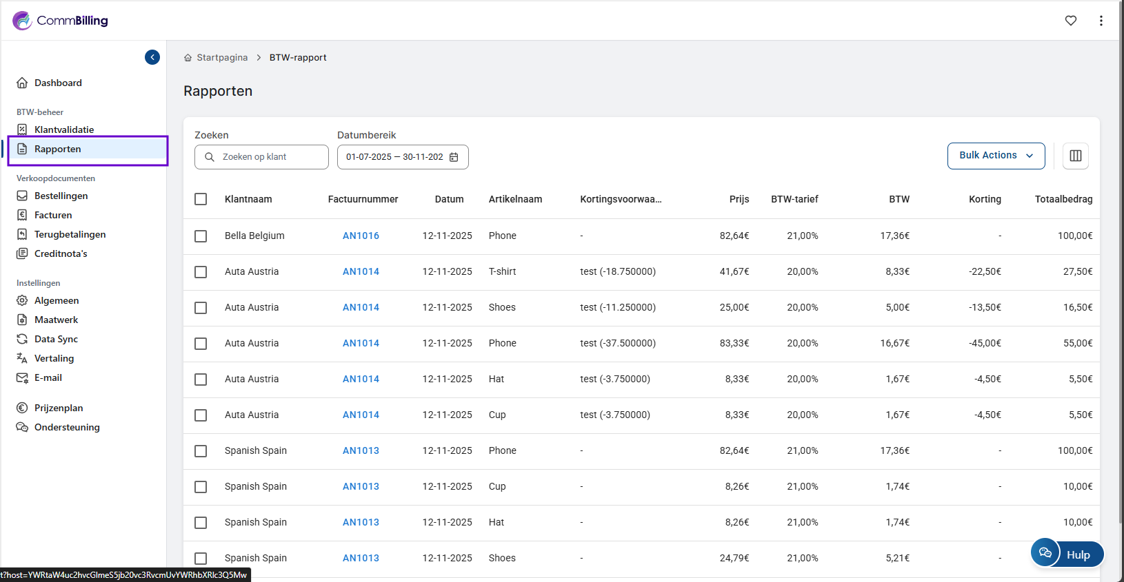 • Exporteren: Download het volledige btw rapport als een .CSV bestand zodat u het eenvoudig kunt importeren in uw boekhoudsoftware of doorgeven aan uw belastingadviseur.