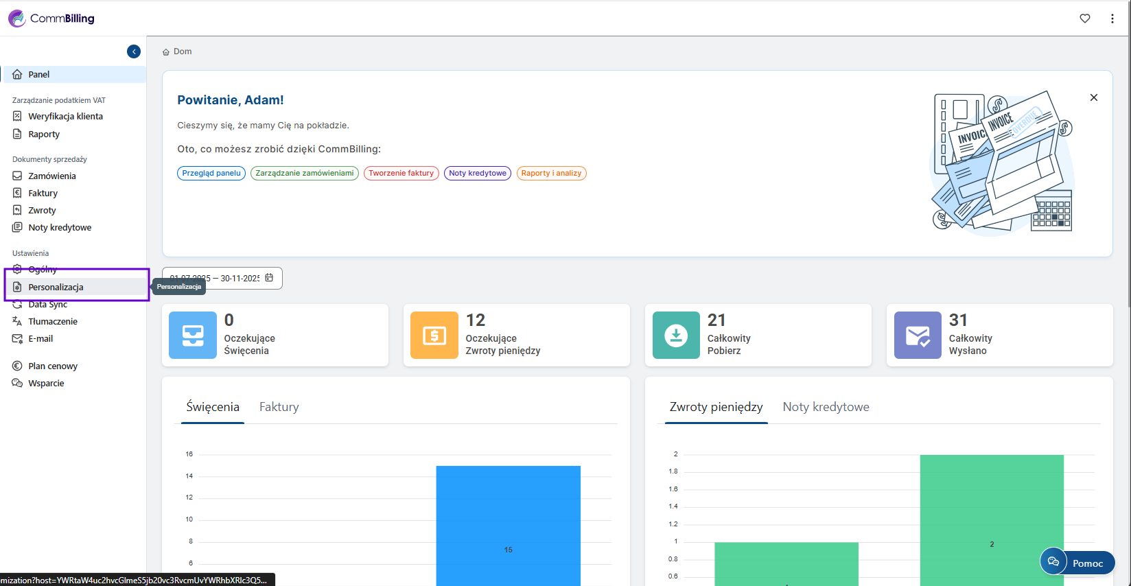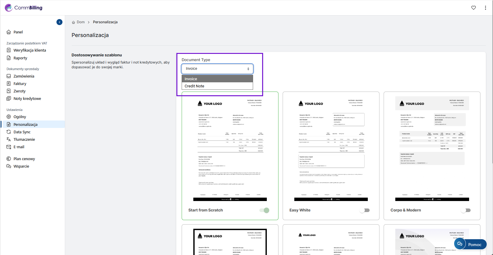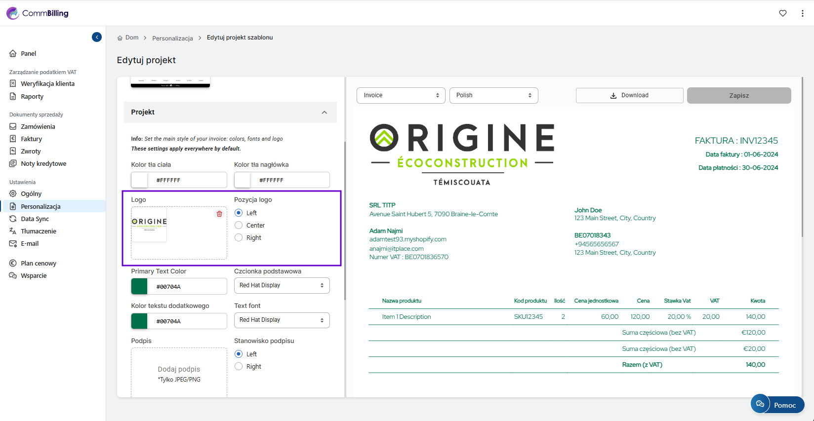 Dzięki dodaniu logo masz pewność, że każda faktura wysłana z CommBilling jest natychmiast rozpoznawalna i spójna z wizualną tożsamością Twojej firmy. Ta drobna, lecz znacząca personalizacja wzmacnia wiarygodność marki i poprawia jakość komunikacji z klientami.