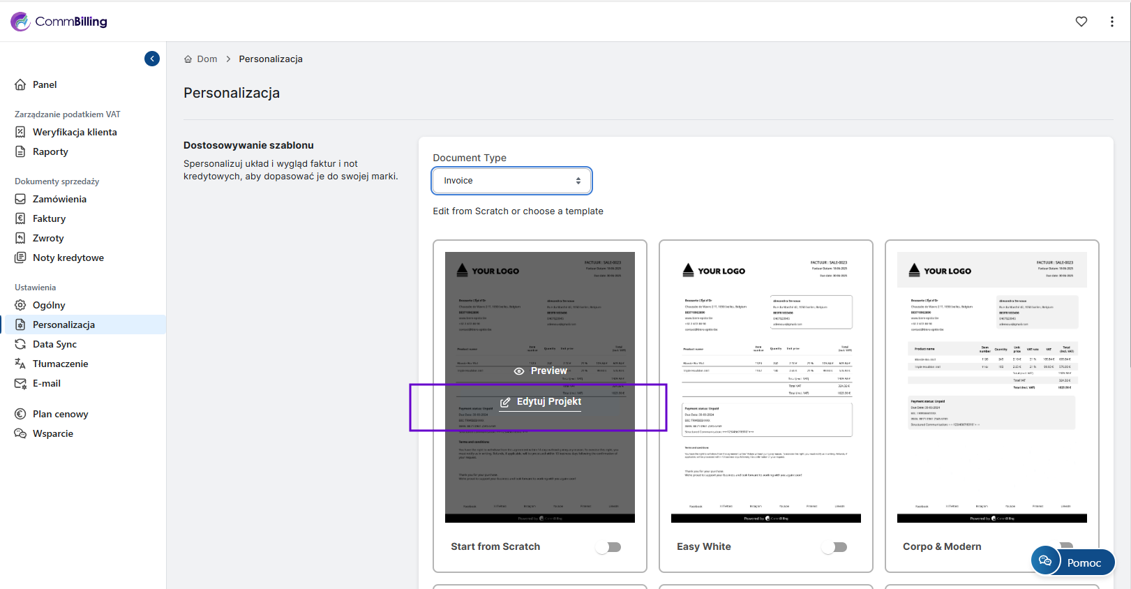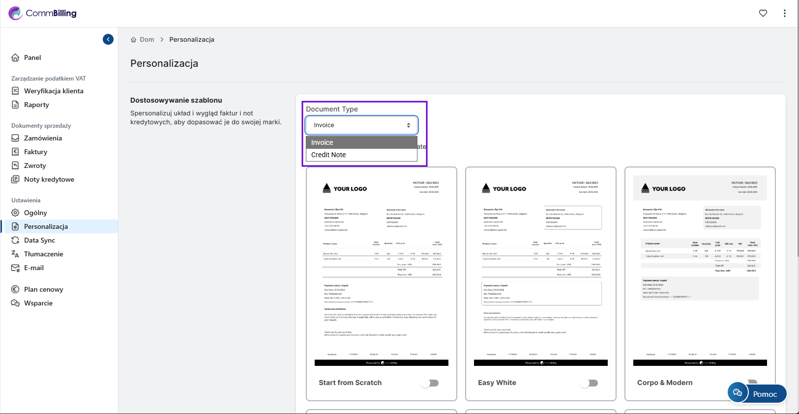 Dostosowując dokumenty sprzedażowe w CommBilling zapewniasz że każda faktura nota kredytowa lub zwrot odzwierciedla profesjonalizm i branding twojej firmy. Ta elastyczność pomaga dostarczać dokumenty które są jasne spójne i dobrze zaprojektowane wzmacniając komunikację z klientami.