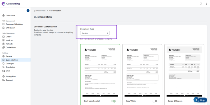 CommBilling’in önceden tanımlanmış profesyonel şablonları sayesinde iş dünyasına hazır bir tasarımla başlamış olursunuz. Arka plan, afiş ve başlık renklerini kişiselleştirme esnekliği ise faturalarınızın hem netliğini ve zarafetini koruyarak hem de markanızın görsel kimliğini tam olarak yansıtmasını sağlar.