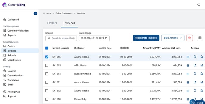 CommBilling uygulamasında oluşturulan faturalarla ilgili eksik veriler, yanlış ayrıntılar veya biçimlendirme sorunları gibi problemlerle karşılaşırsanız, faturayı yeniden oluşturmak ve öncelikle ayarlarınızı doğrulamak için aşağıdaki adımları izleyin.
